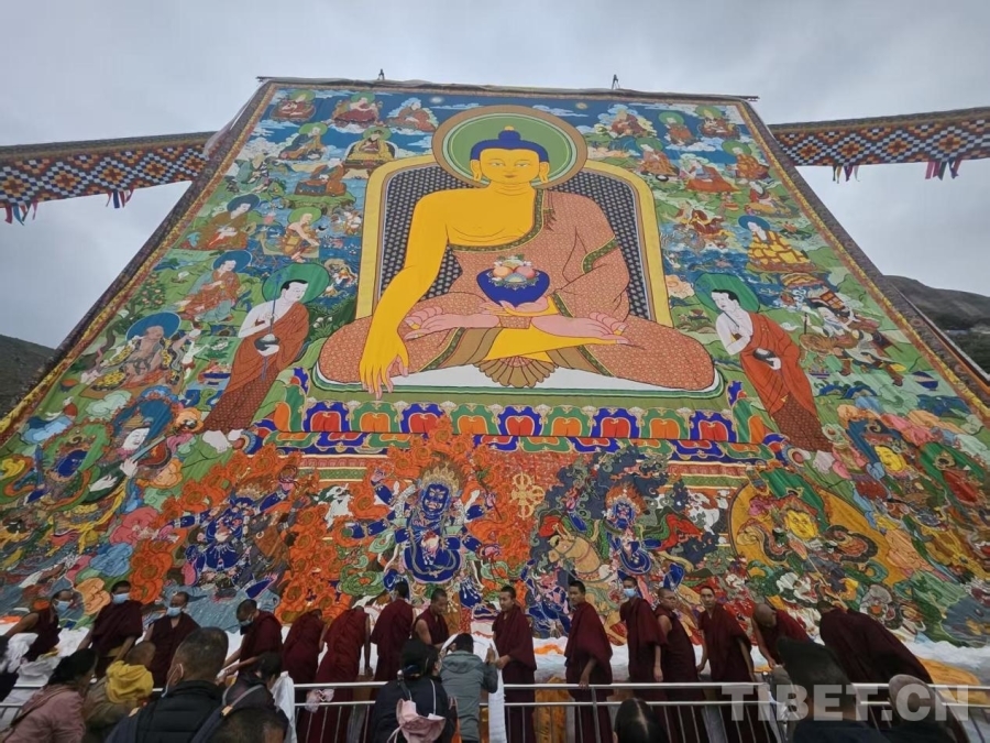 中國西藏網(wǎng)訊 8月23日晨,西藏自治區(qū)拉薩市色拉寺舉行展佛活動,展出巨幅釋迦牟尼佛唐卡,標志著一年一度的拉薩雪頓節(jié)拉開了序幕。