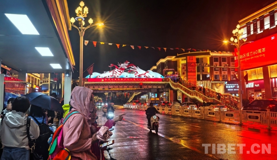 車(chē)窗外,燈火璀璨,各色店招牌與為了慶祝西藏自治區(qū)成立60周年新?lián)Q的燈牌、彩旗交相輝映,令雨后的拉薩更顯靈動(dòng)剔透。于師傅由衷地感慨:“拉薩真美啊。這次你們來(lái)旅游真是太合適了。”