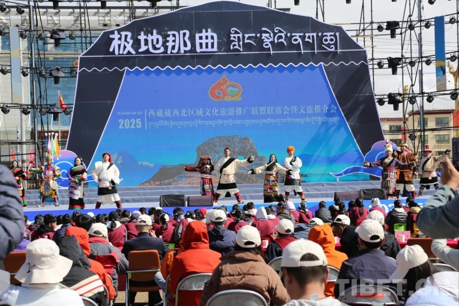 活動開始前,現(xiàn)場播放了昌都、那曲、阿里及相關(guān)縣(區(qū))的文化旅游宣傳片。昌都市與那曲市先后登臺推介本地文化旅游資源,昌都重點(diǎn)展示了茶馬古道、三江并流以及芒康鹽井等獨(dú)特資源;那曲則聚焦于羌塘草原、納木錯(cuò)圣象天門、薩普景區(qū)以及格薩爾史詩等核心資源,彰顯了“極地那曲”的無限魅力。索縣、申扎、尼瑪三縣從微觀視角推介縣域特色——索縣的贊丹雪、穹雄溝、申扎縣的色林錯(cuò)、尼瑪縣的當(dāng)惹雍錯(cuò)等人文風(fēng)光,進(jìn)一步豐富了藏西北文旅的內(nèi)涵。舞蹈《古韻》,《非遺服飾秀》、歌曲《年輕的城市》《請到那曲走一走》一次次將聯(lián)席會推向高潮。