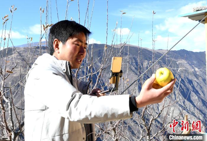 張飛用互聯(lián)網(wǎng)幫村民賣蘋果。安源 攝