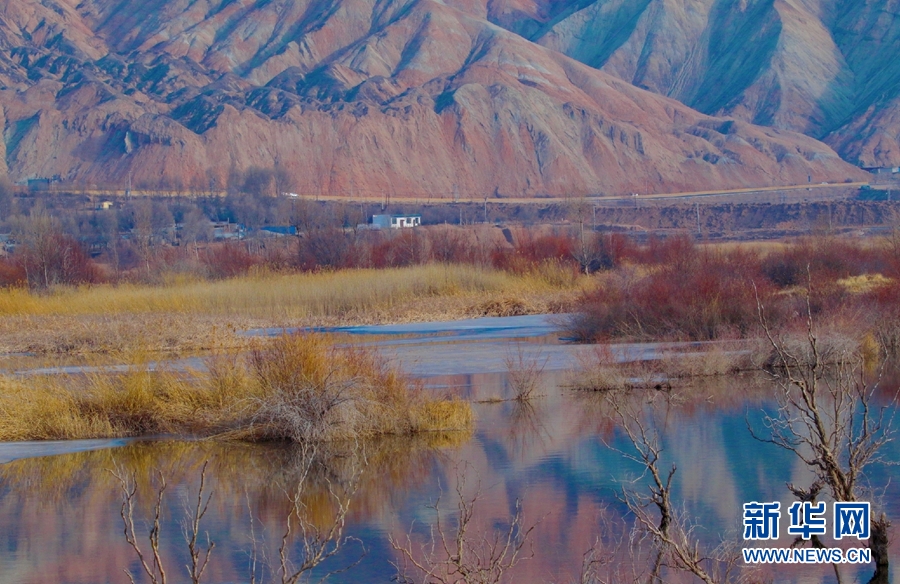 位于青海省海南藏族自治州貴德縣的千姿湖濕地公園景觀層次豐富,特色鮮明,沿黃河兩岸形成了眾多濕地,尤其是,貴德特有的五彩丹霞就圍繞著這片濕地,碧水丹山,宛若仙境。