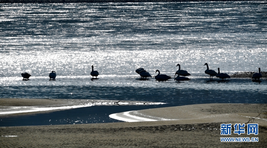 一群天鵝在千姿湖嬉戲。新華網(wǎng) 宋忠勇 攝