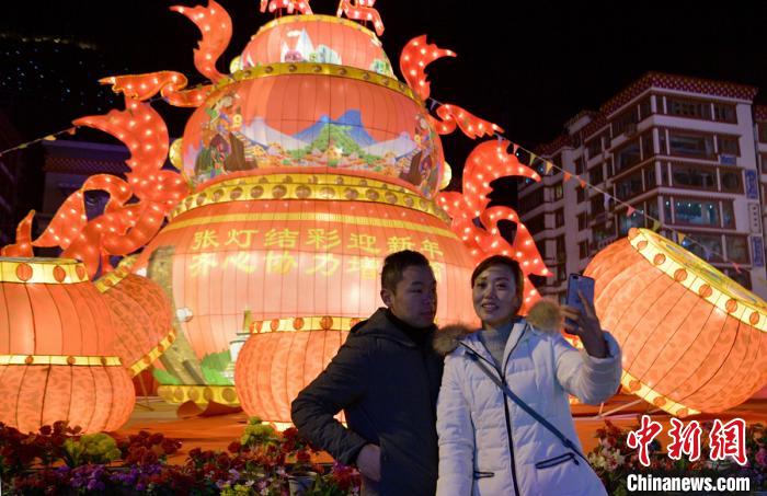 康定街頭大型彩燈組點綴迎新春。劉忠俊 攝