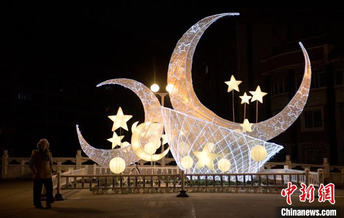 康定街頭的漂亮的月亮彩燈組。劉忠俊 攝