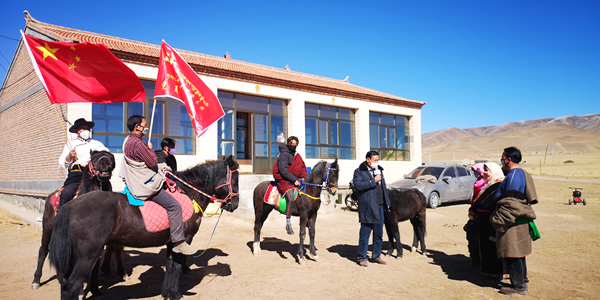 宣傳隊(duì)騎著馬開展宣傳。(黃南州委組織部供圖)