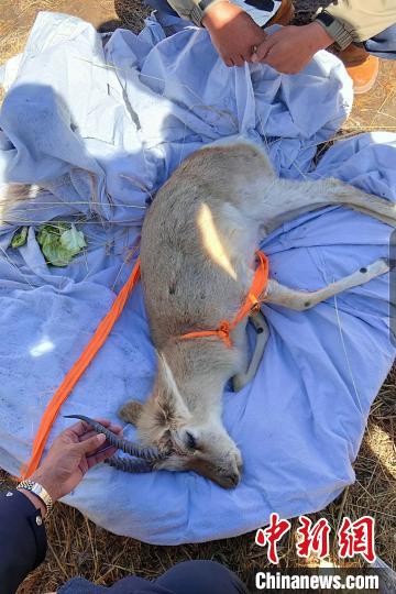 圖為受傷的國家二級保護野生動物雄性藏原羚。達(dá)日縣森林公安局供圖