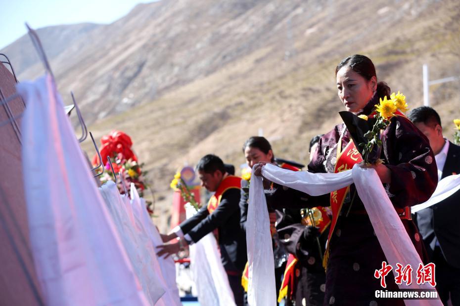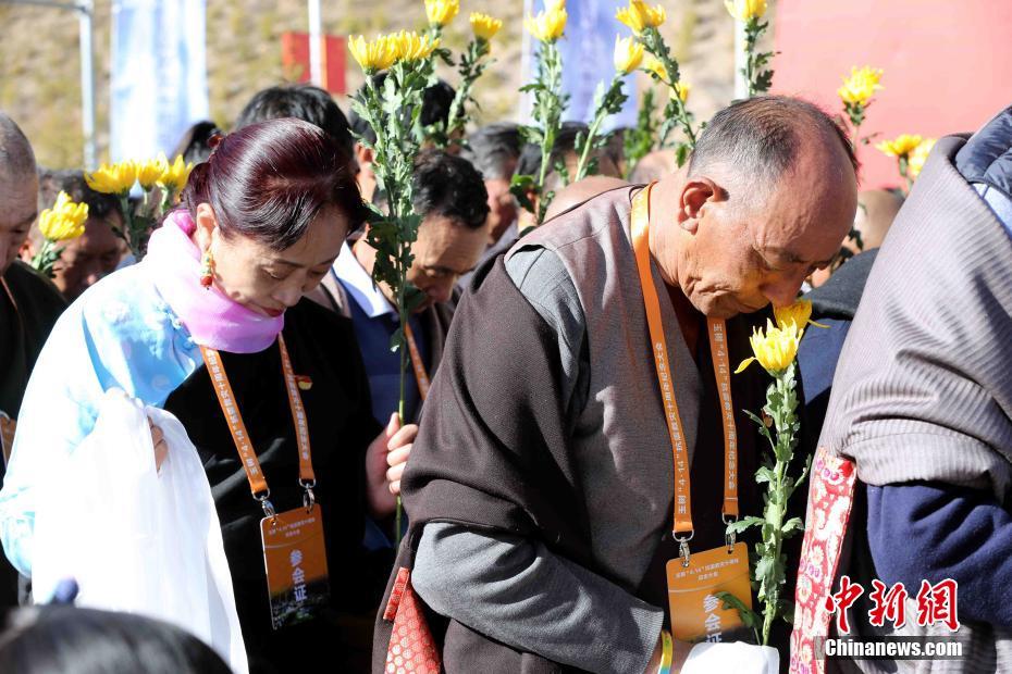 圖為民眾手捧哈達和鮮花緬懷犧牲英烈及罹難同胞。中新社記者 張?zhí)砀?攝