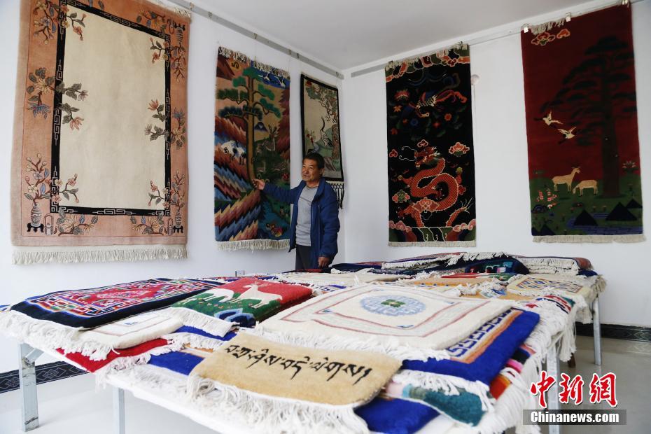5月8日,在青海省湟中縣加牙村加牙藏族織毯技藝傳習(xí)所內(nèi),加牙藏毯第七代傳人楊永良展示制作精美的藏毯。楊永良介紹,加牙村有著300多年的織毯歷史,加牙藏毯色澤艷麗不褪色,質(zhì)地堅硬而富有彈性,可以使用近200年。獨特的編制技法及濃郁的民族特色使加牙藏毯受到眾多國內(nèi)外藏毯愛好者的喜愛。中新社記者 馬銘言 攝