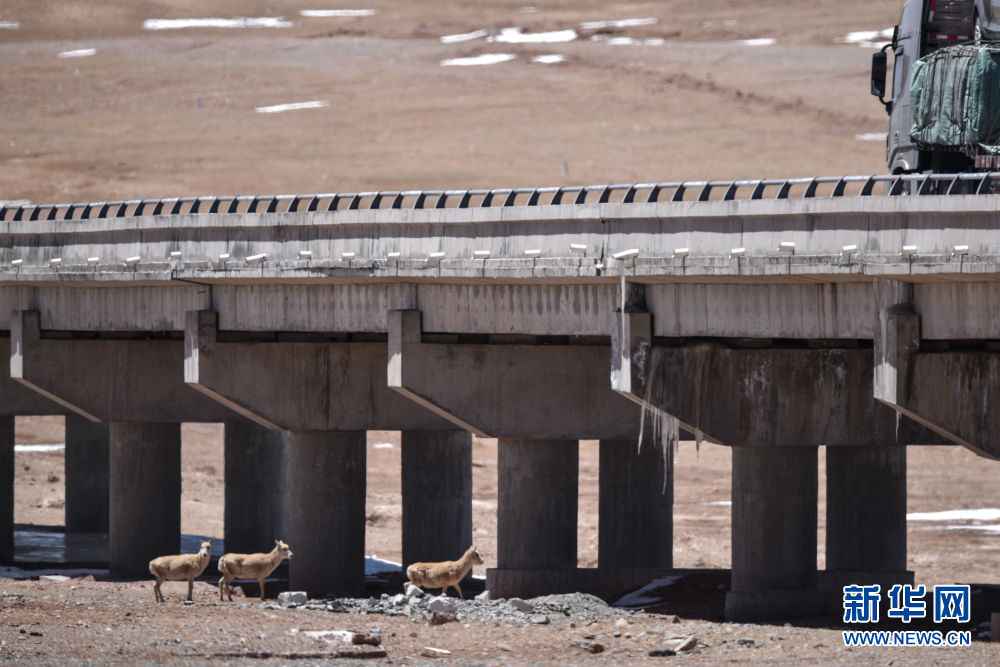 5月16日,幾只藏羚羊嘗試通過一座大橋,前往可可西里地區(qū)。新華社記者 吳剛 攝