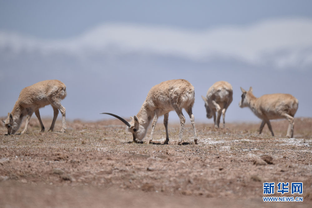 5月16日,一群藏羚羊在可可西里地區(qū)活動(dòng)。新華社記者 吳剛 攝