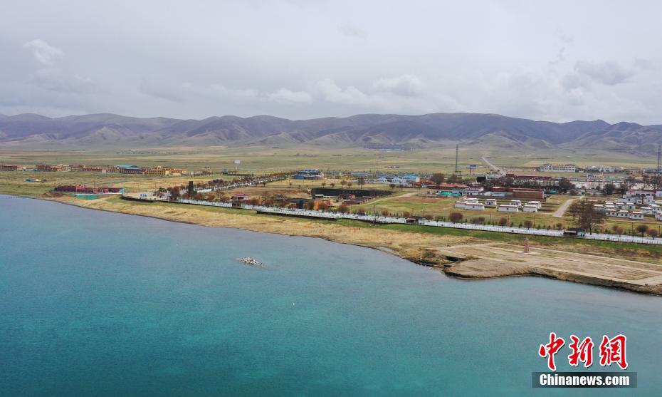 5月19日,航拍青海湖畔。初夏時節(jié),青海省海南藏族自治州青海湖畔萬物復蘇,碧水藍天,宛如油畫。中新社記者 馬銘言 攝