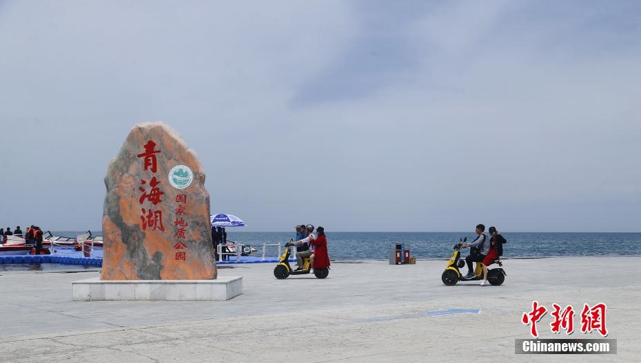 5月19日,游客騎著電動車在青海湖二郎劍景區(qū)內(nèi)游玩。當日是中國旅游日,游客在青海省海南藏族自治州青海湖二郎劍景區(qū)內(nèi)觀湖、與水鳥互動、感受初夏青海湖的海天一色之美。中新社記者 馬銘言 攝