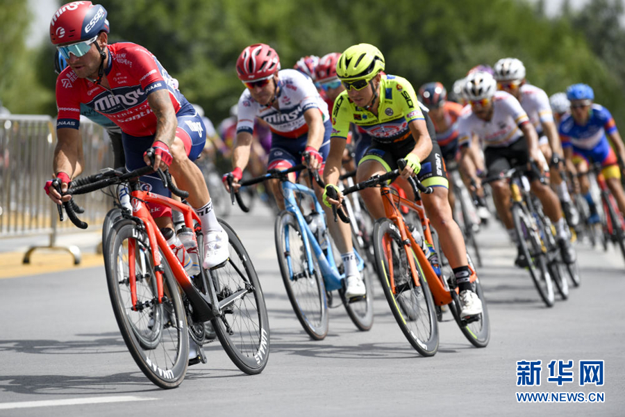 2019年7月27日,參賽車手在比賽中。當(dāng)日,第十八屆環(huán)青海湖國際公路自行車賽結(jié)束最后一個賽段——寧夏銀川繞圈賽的角逐。新華社 馮開華 攝