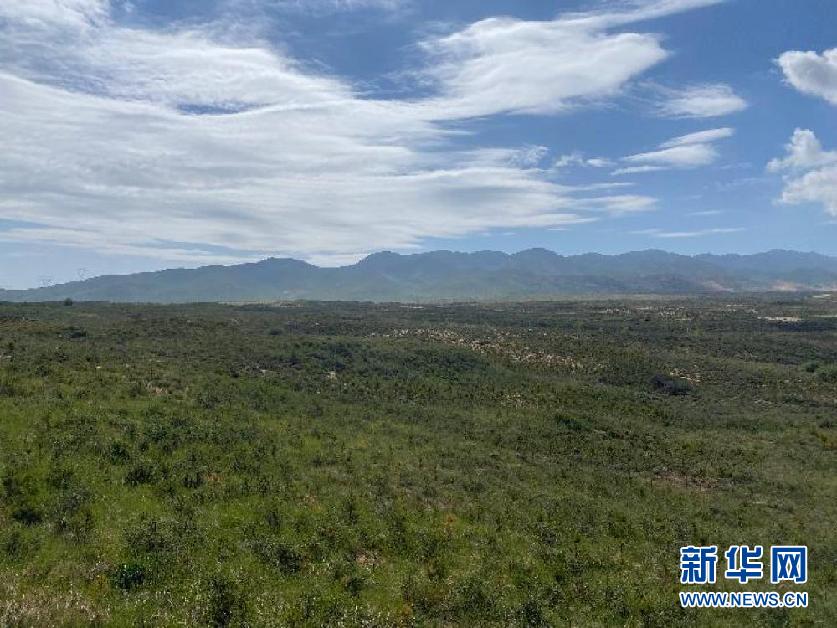 這是青海省海北藏族自治州海晏縣國家級防沙治沙綜合示范區(qū)的克圖沙區(qū),原來的大片流沙區(qū)如今已是綠意盎然(7月7日手機拍攝)。新華社記者 溫競?cè)A 攝