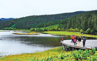 游客在普達措國家公園內(nèi)游覽。新華社記者 張譽東 攝