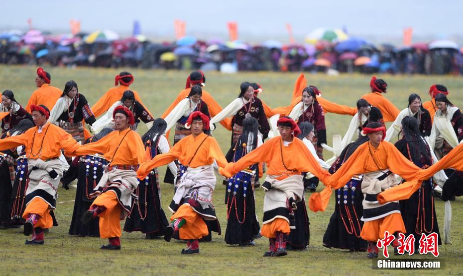 圖為理塘群眾正在進行鍋莊表演。 劉忠俊 攝