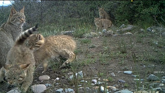 據(jù)了解,近日祁連山國(guó)家公園青海省管理局聯(lián)合北京大學(xué)開展荒漠貓專項(xiàng)調(diào)查時(shí),從野外回收的紅外相機(jī)數(shù)據(jù)中發(fā)現(xiàn)了一組荒漠貓撫育幼崽的珍貴視頻畫面。視頻中一只雌性荒漠貓安靜的守護(hù)在旁邊,看著4個(gè)孩子相互打鬧、嬉戲玩耍,4只幼崽萌態(tài)十足,對(duì)大自然充滿好奇。