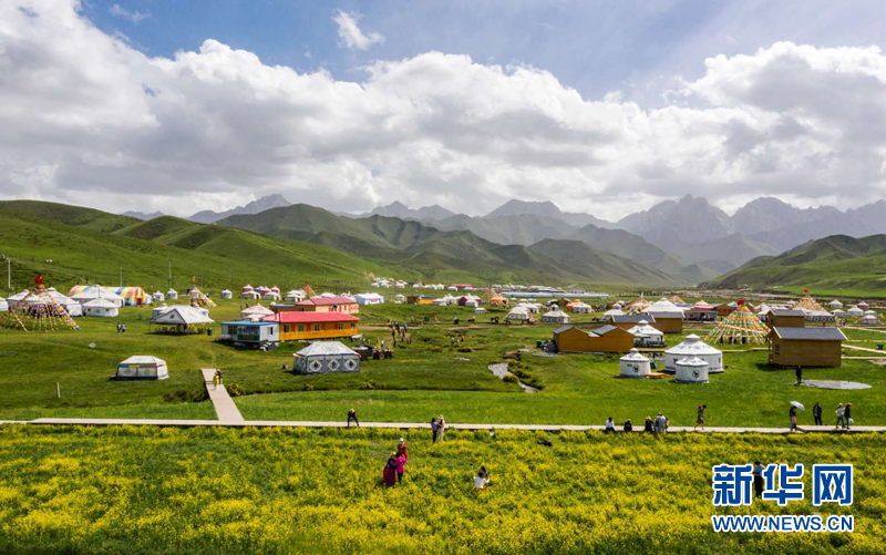 8月,祁連山下的抓喜秀龍草原美得醉人。湛藍的天空下,綠茸茸的草原一望無際。草原上,不時可看到清理垃圾的小背影。