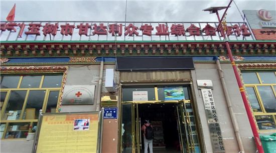 帶著這個疑問,8月初,人民網(wǎng)“大道康莊”全媒體調(diào)研行采訪團隊來到青海玉樹,在距離玉樹市15公里的308省道旁,找到了這間當?shù)匕傩湛诳谙鄠鞯摹案蔬_村超市”一探究竟。
