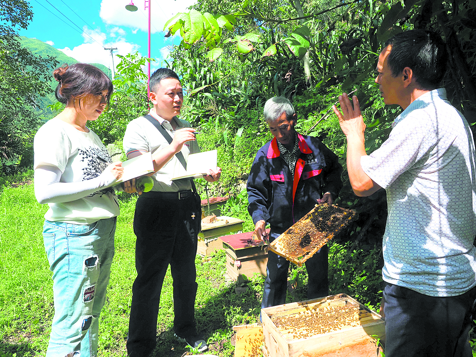 回轉(zhuǎn)身去,蒲江縣對(duì)口援助瀘定工作隊(duì)隊(duì)長(zhǎng)吳孟賢正和張洪彬攀談著今年的蜜蜂增收情況?!捌呀h新增財(cái)政幫扶資金277萬(wàn)元作為獎(jiǎng)補(bǔ)資金,激勵(lì)成都三千米甜蜂業(yè)有限公司落戶瀘定發(fā)展的‘貢嘎中蜂’養(yǎng)殖支援項(xiàng)目,現(xiàn)在已經(jīng)累計(jì)發(fā)放貢嘎中蜂7500余群,幫助全縣38個(gè)貧困村發(fā)展村級(jí)集體經(jīng)濟(jì),示范帶動(dòng)800戶以上貧困戶增收。”吳孟賢滔滔不絕如數(shù)家珍,身旁飛過的貢嘎中蜂也似乎成了他和其他對(duì)口支援隊(duì)員的化身,他們從舒適的成都平原來(lái)到高原瀘定,懷揣堅(jiān)定的信念,用行動(dòng)肩負(fù)起責(zé)任與擔(dān)當(dāng),他們將藏族同胞的利益裝在心里、舉過頭頂,排除千難萬(wàn)險(xiǎn),因地制宜推動(dòng)當(dāng)?shù)匕l(fā)展;跋山涉水,進(jìn)居入戶,訪貧問苦,為藏族同胞送上溫暖與關(guān)懷……他們用心血和汗水書寫著一個(gè)大大的“愛”字,甜到藏族同胞的心坎上。
