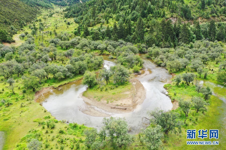 航拍視角下的普達(dá)措“幾”字形河道(攝于8月27日)。新華網(wǎng) 趙普凡 攝