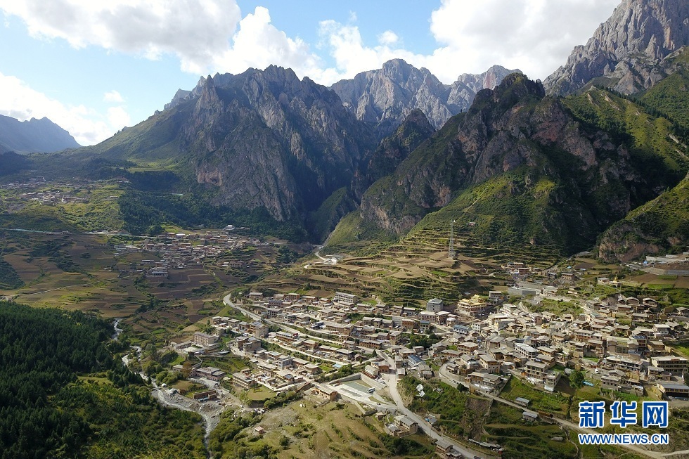 9月9日在甘肅省甘南藏族自治州迭部縣益哇鎮(zhèn)拍攝的扎尕那村(無人機照片)。新華社記者 范培珅 攝