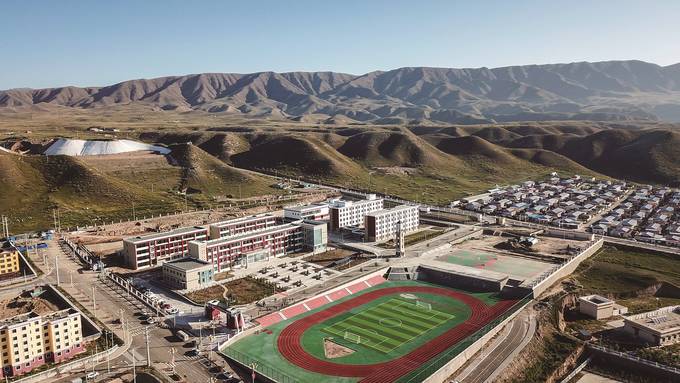 由江蘇援建的海南州第五民族高級(jí)中學(xué),2019年9月正式投用。 邵丹 攝