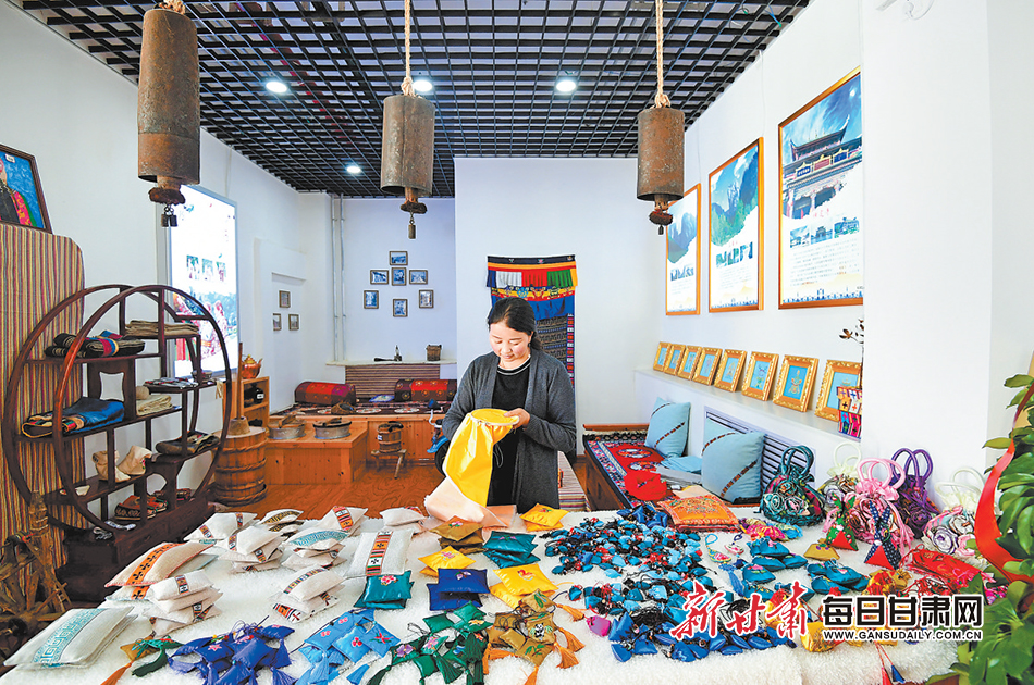 位于卓尼縣商業(yè)街的德琴巧手民俗文化旅游發(fā)展貿(mào)易有限公司,帶動(dòng)許多婦女實(shí)現(xiàn)家門口就業(yè)。