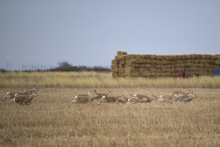 一群普氏原羚在特護區(qū)內(nèi)奔跑、跳躍。(11月20日攝)新華網(wǎng) 潘彬彬 攝