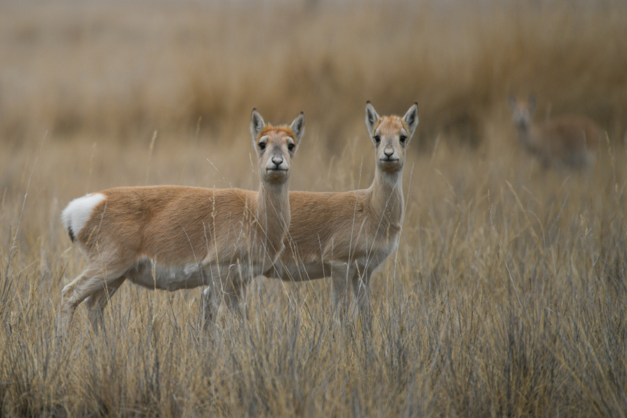 11月20日,東知布拍攝在特護區(qū)內(nèi)活動的普氏原羚。新華網(wǎng) 潘彬彬 攝