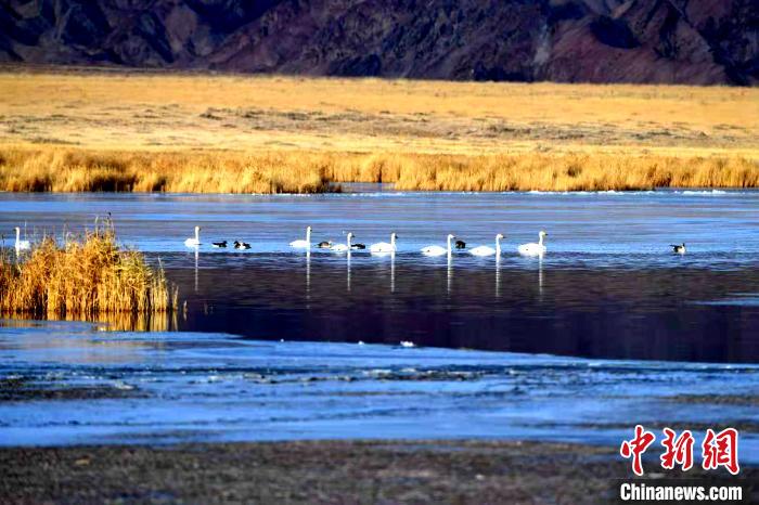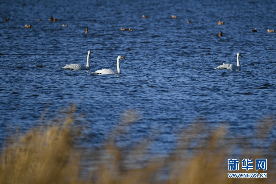 大天鵝飛抵柴達(dá)木盆地都蘭湖國(guó)家濕地公園“越冬”