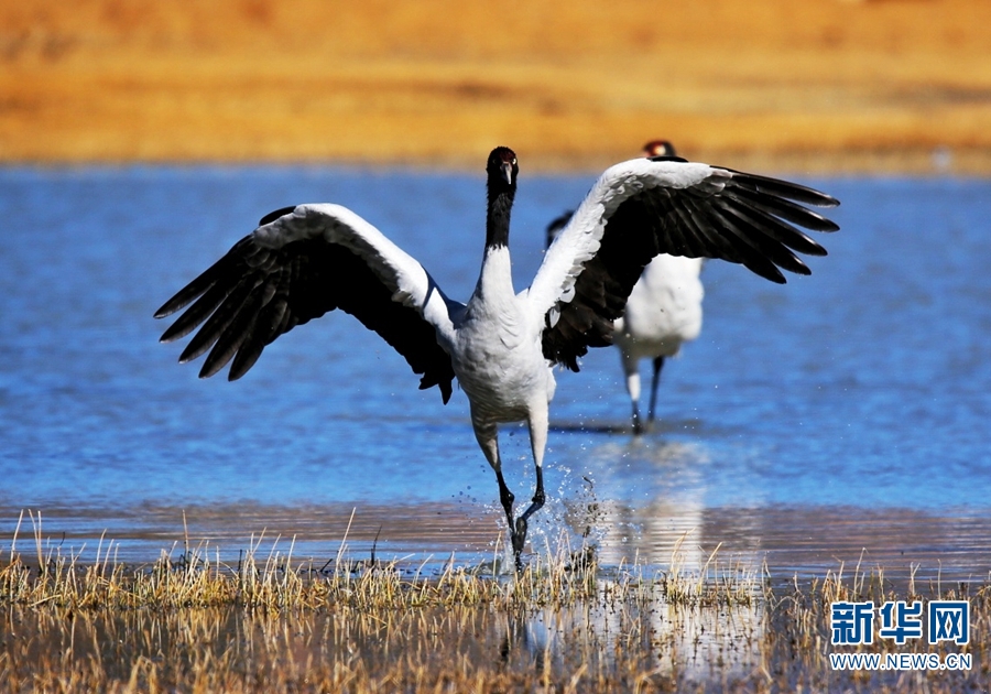 這是11月20日在云南省香格里拉市納帕海國際重要濕地拍攝的黑鸛。新華社 陳志明 攝