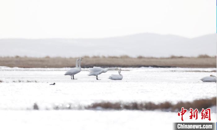 白天鵝飛抵若爾蓋棲息越冬。周林 攝
