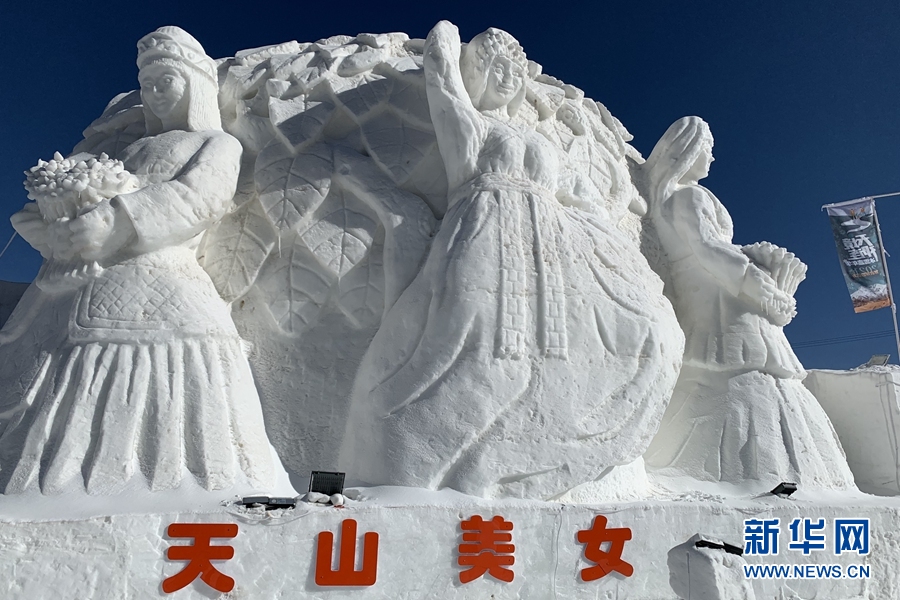 圖為精美的“天山美女”雪雕。新華網 馬洪婷 攝