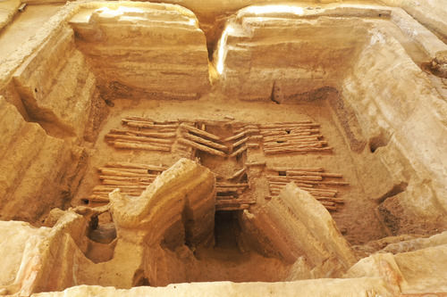 圖為2018血渭一號(hào)墓墓壙全景。新華社發(fā)(熱水聯(lián)合考古隊(duì)供圖)