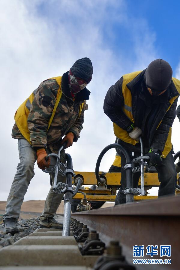 2月4日,養(yǎng)路工人在唐古拉山區(qū)養(yǎng)護青藏鐵路。新華社記者 張龍 攝