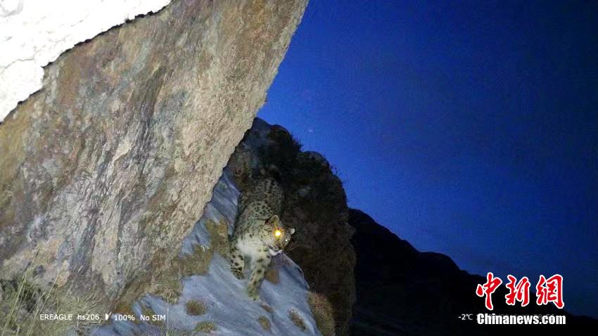 圖為相機(jī)夜幕下抓拍到的雪豹活動(dòng)畫(huà)面。青海原上草自然保護(hù)中心供圖