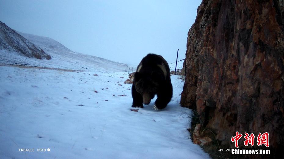 圖為相機(jī)抓拍到的棕熊活動(dòng)畫(huà)面。 青海原上草自然保護(hù)中心供圖
