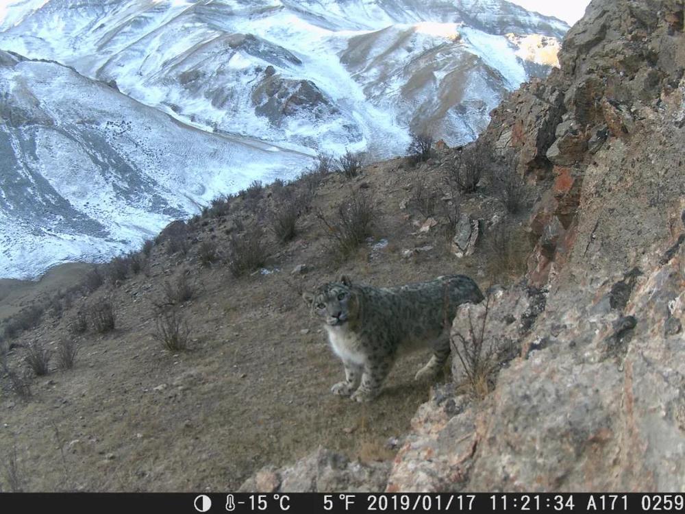 2019年1月17日,在祁連山國(guó)家公園青海片區(qū),紅外相機(jī)拍攝到的雪豹照片。