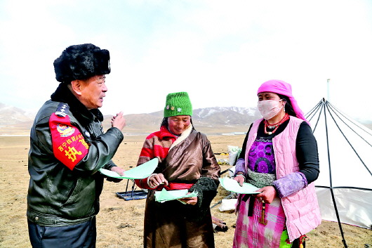 民警向沿線牧民宣傳法治安全常識。
