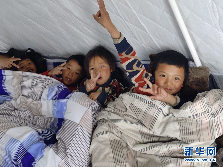 “帳篷里挺暖和,老師們都陪著我們,現(xiàn)在很安心,不覺得害怕?!本拍昙壱话鄬W生扎西東周說。