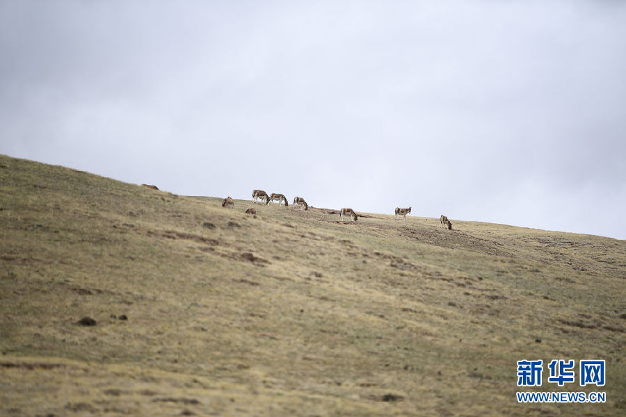 5月25日,一群藏野驢在三江源國家公園黃河源園區(qū)內(nèi)活動(dòng)。新華社記者 李占軼 攝