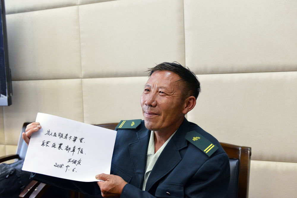 2018年9月6日,王順友寫下“為人民服務不算苦,再苦再累都幸福”(中國郵政集團有限公司四川省分公司供圖)。