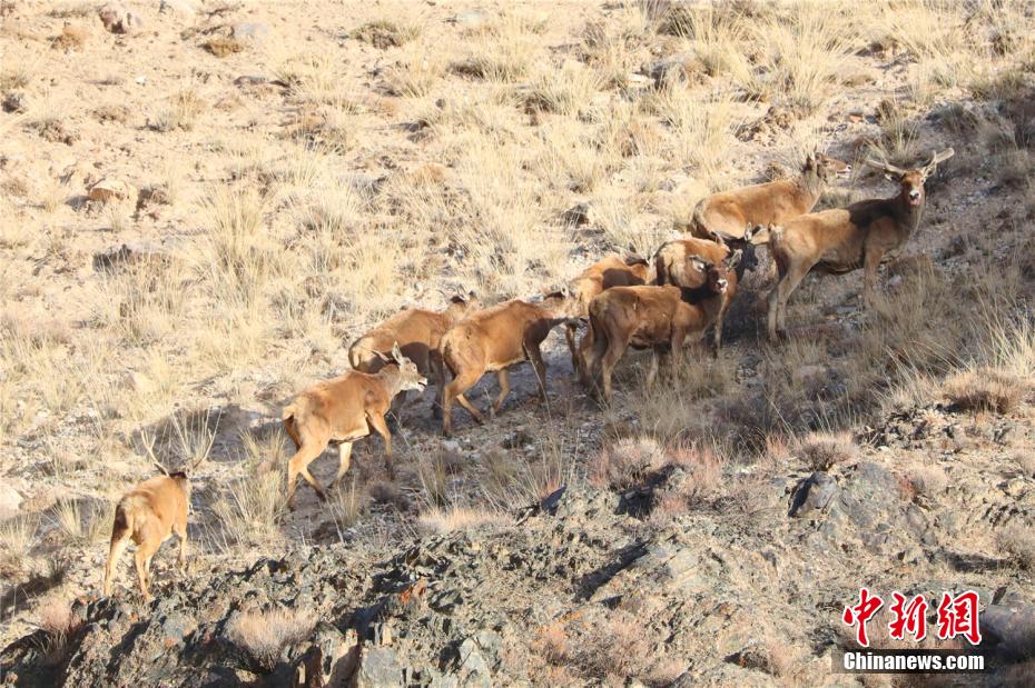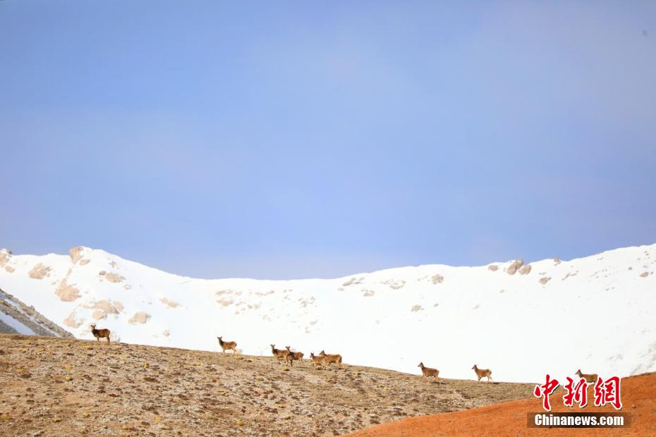 近日,甘肅張掖市祁連山國家公園內(nèi)野生動物“組團(tuán)”出沒的難得一見畫面。郎文瑞 攝