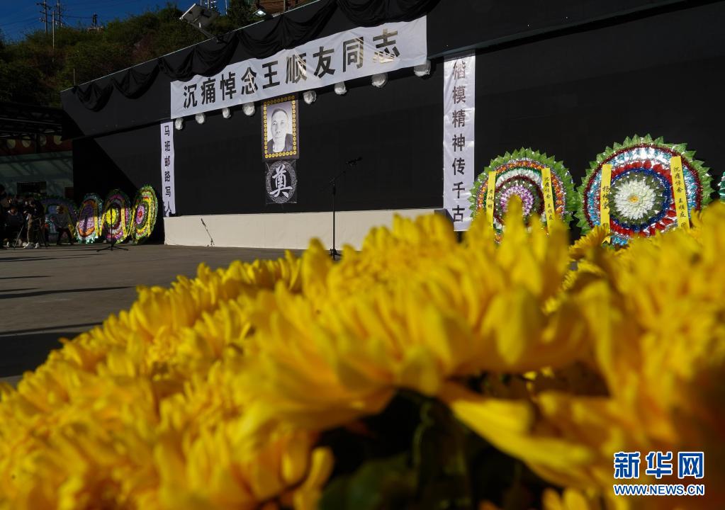 現(xiàn)場莊嚴(yán)肅穆、哀樂低回。廣場正中懸掛著遺像和黑底白字橫幅“沉痛悼念王順友同志”,挽聯(lián)寫著:馬班郵路寫人生,楷模精神傳千古。