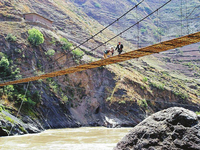 拉馬過吊橋的王順友。四川日報全媒體記者毛漫丁攝(攝于2005年5月)
