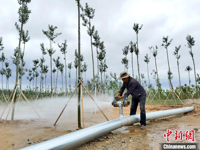 正如何香龍說的“三分種,七分護”,栽樹完成后,為了能讓樹苗存活,澆水是必不可少的工作?!案珊怠L大,都是我們這里植被生存面臨的難關(guān),為此,青海省林草局投資200萬元鋪設(shè)了灌溉系統(tǒng),每棵樹特地用三腳架固定起來了?!焙蜗泯堈f。