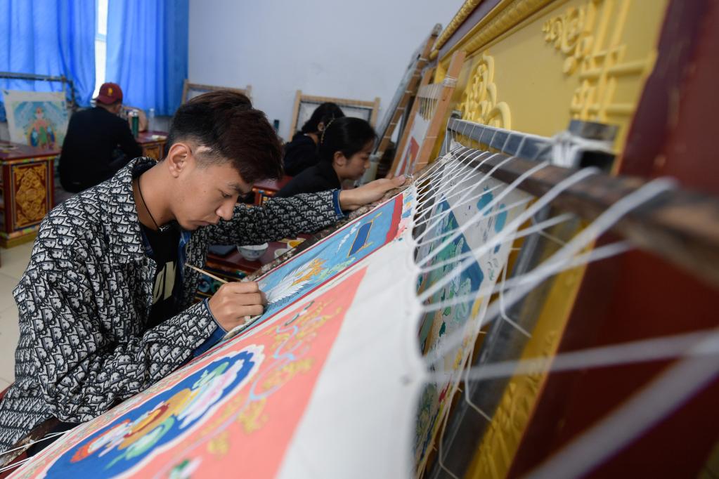 唐卡是藏族文化中獨具特色的繪畫藝術(shù)形式,具有鮮明的民族特點,被稱為藏族的“百科全書”,也是中華民族彌足珍貴的非物質(zhì)文化遺產(chǎn)。2001年,青海民族大學(xué)藝術(shù)學(xué)院創(chuàng)辦全國首個工藝美術(shù)(唐卡)專業(yè),將傳統(tǒng)民間藝術(shù)納入大學(xué)教學(xué)體系,實現(xiàn)從民間師徒傳承模式向?qū)W校教學(xué)模式的轉(zhuǎn)變,為傳統(tǒng)民族文化培養(yǎng)人才,更好地傳承非遺文化。