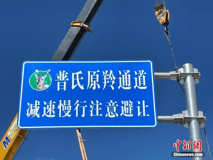 圖為7月2日,青海省海北州剛察縣新設(shè)立的普氏原羚通道警示牌。青海省海北州人民檢察院 供圖
