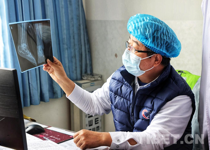 “您母親的踝關(guān)節(jié)情況不容樂觀,建議馬上手術(shù),不要再吃藥了,這非但沒有幫助還會引起腸胃疾病?!边@句簡短的醫(yī)囑是在王安慶一邊吸氧一邊極力調(diào)整呼吸的情況下完成的。對于那些初入高海拔地區(qū)義診的醫(yī)生來說,他們本身也受到高原反應(yīng)的困擾,這點王安慶很清楚。但是看到科室門口等待救治的患者,他沒有辦法讓自己停下來。